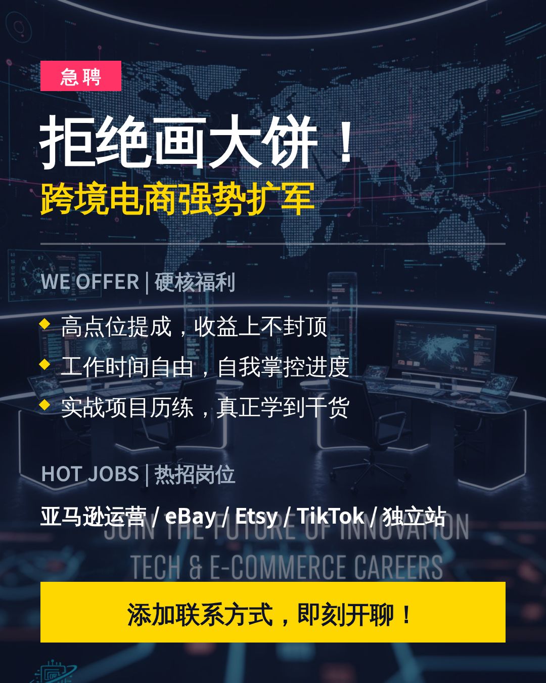 集结所有对电商充满热情的追梦者!无论你是留学生 宝妈 上班族或有经验的老兵,这里就是实现你个人价值的最佳平台