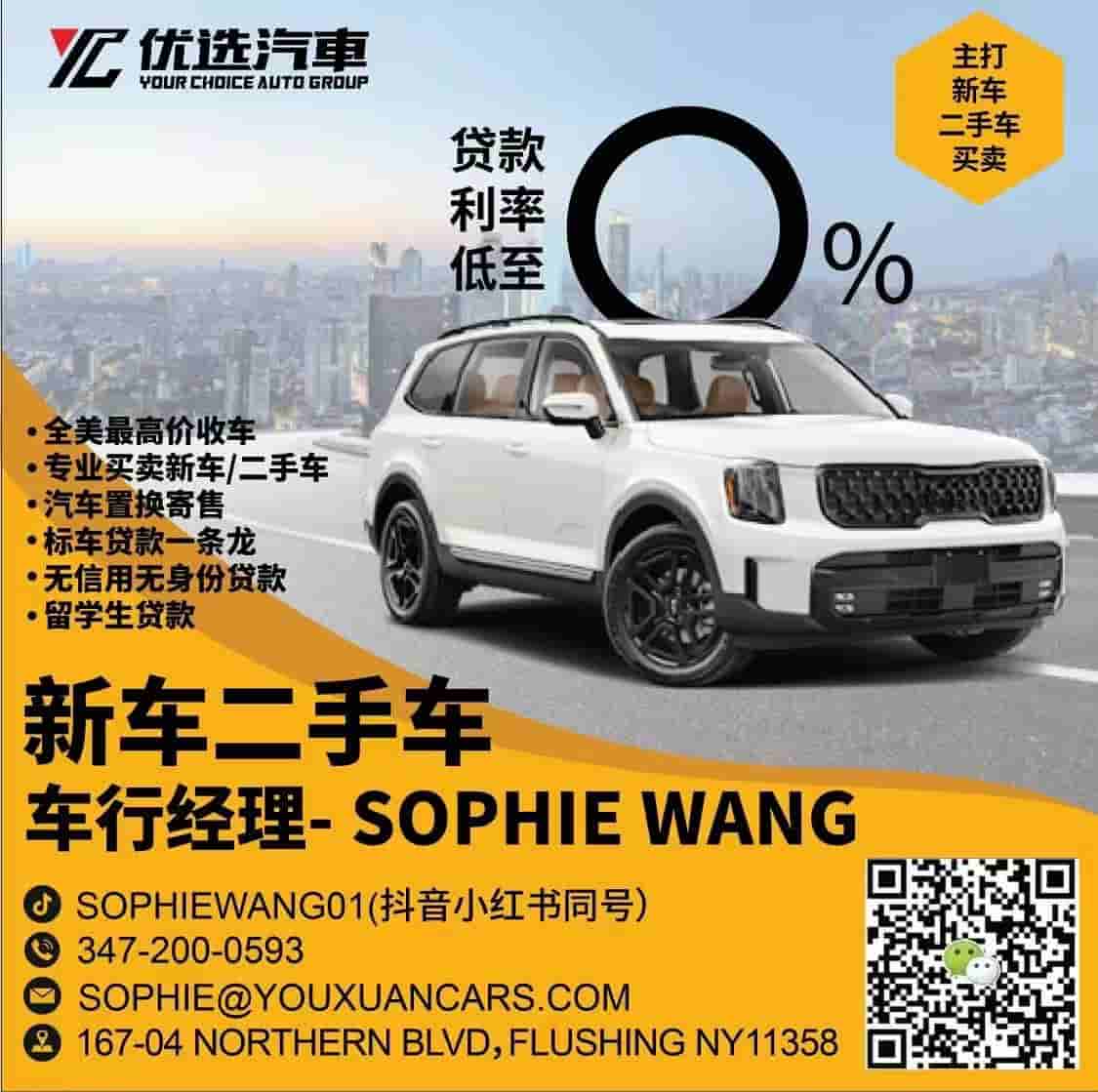 优选汽车公司,坐落于法拉盛北方大道(167-04 Northern Blvd, Flushing, NY 11358),由资深汽车顾问 Sophie Wang 主理,多年来专注为纽约华人、新移民及留学生提供专业、透明、可靠的一站式汽车服务,让每位客户享受 放心买车、安心用车、透明交易 的购车体验。