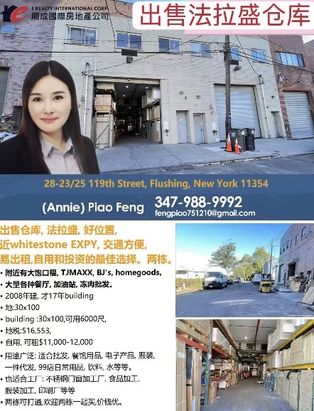法拉盛核心工业与商业交汇区域的两栋独立仓库/商业物业现正式上市出售,地理位置优越,紧邻Whitestone Expressway,交通极其便利,适合批发、仓储、加工及多种商业用途。物业成熟稳定,使用灵活,是少有的高价值工业投资资产。