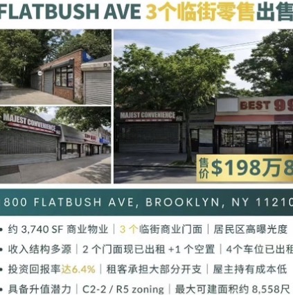 🎉 布鲁克林6.4%超高回报率 超高曝光BROOKLYN Flatbush Ave retail出售 🎉稳定现金流+具备后续增值空间