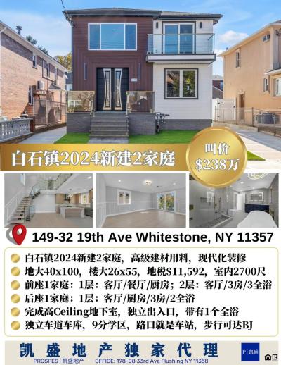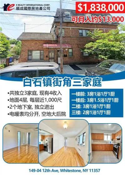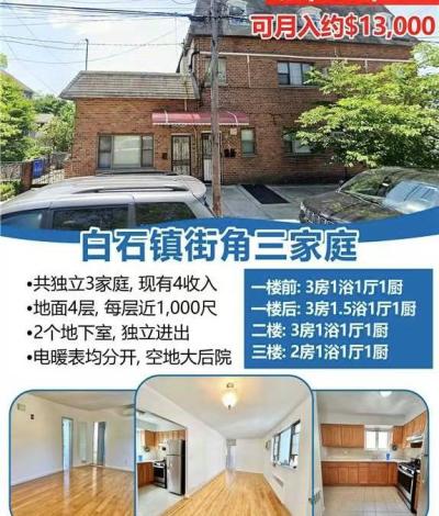 ![]() | Corona可乐娜房子出售Corona NY新上市可乐娜房屋出售🌟【CORONA3家庭单边砖房】出售🌟🌟Asking Price: $1,580,000 🌟 🔵CORONA绝佳投资机会,单边3家庭砖房 By 匿名 on | 白石镇出售 | By 匿名 on |