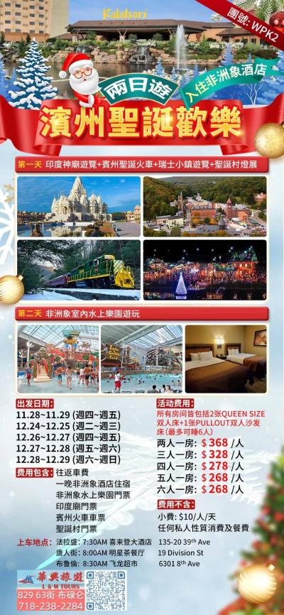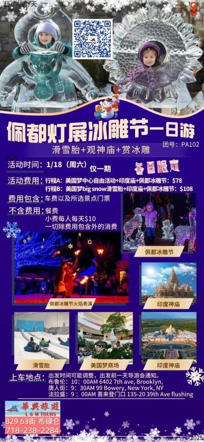 ![]() | 旅游非洲象室内水上乐园一日游 庄严寺+大乘寺 "美国梦商场自由逛:免费 蝴蝶谷+冰雪城堡;炮台峰缆车+洋基蜡烛村 乔治湖冰雪嘉年华两日游团号:大乘寺+乔治湖冰雪嘉年华 白面山缆车赏冬景+纽约首府奥本尼 By 匿名 on | 🛳️邮轮·度假🏖️ | By 匿名 on |