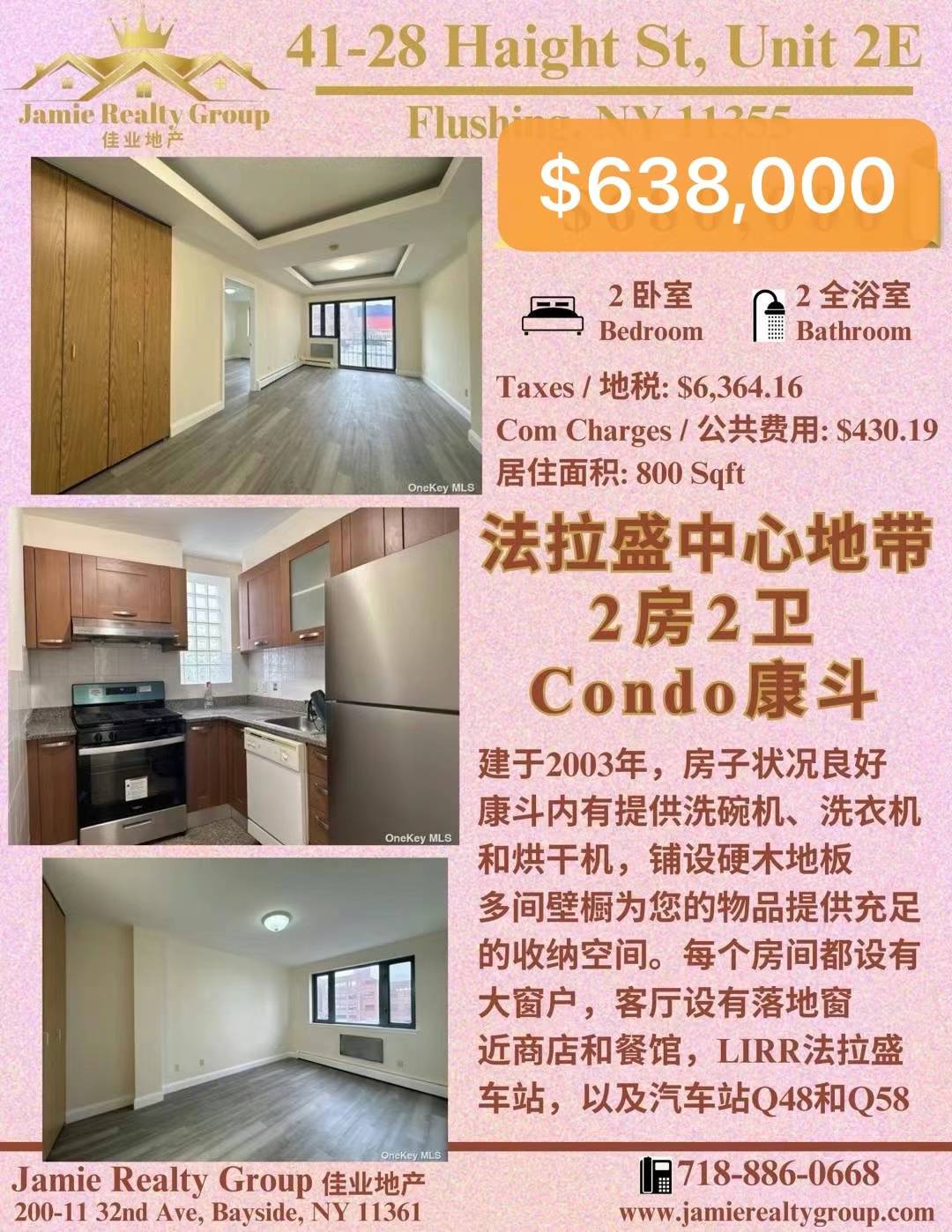 位于法拉盛中心的两卧室两卫浴公寓。建于2003年,状况良好,单元内配有洗衣机和干衣机,硬木地板,低公共费用。靠近商店和餐厅,法拉盛LIRR车站以及Q48和Q58公交车站.🈶电梯🛗