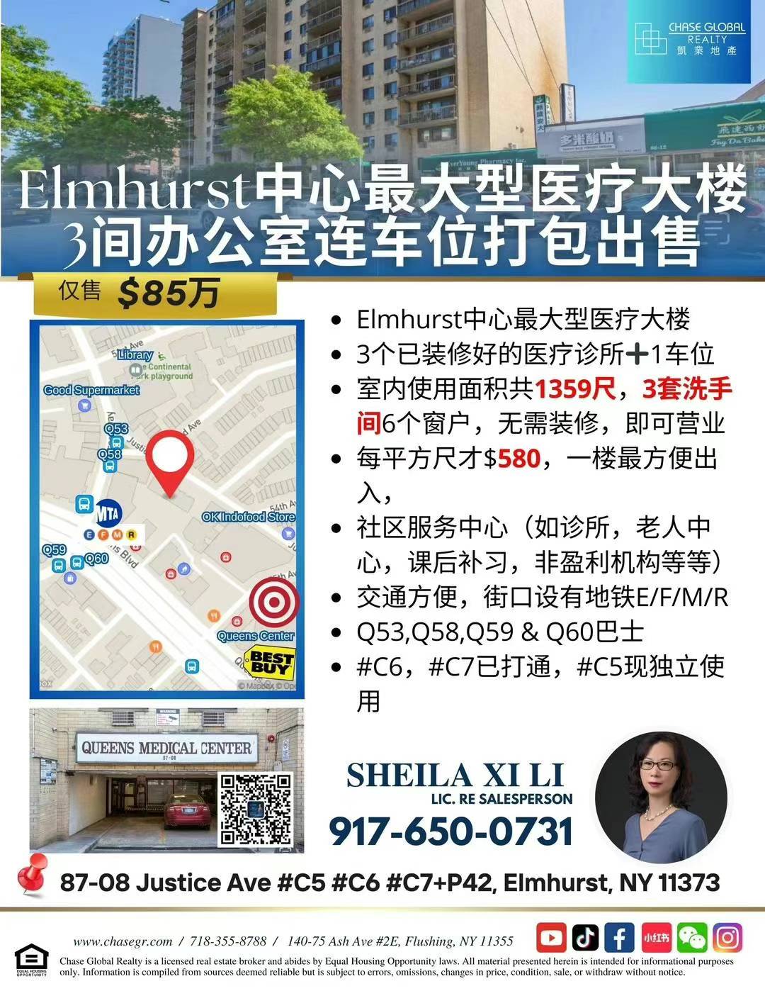Elmhurst中心最大型医疗大楼,3个已装修好的医疗诊所➕1车位,售💰85万