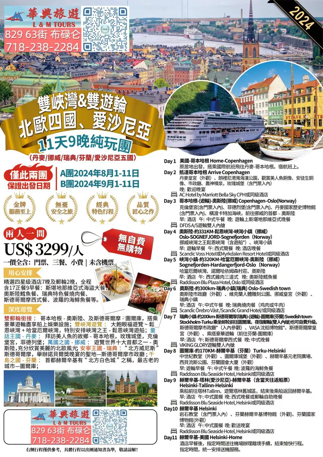 北歐四國+愛沙尼亞一國、雙峽灣&雙遊輪11天9晚純玩團