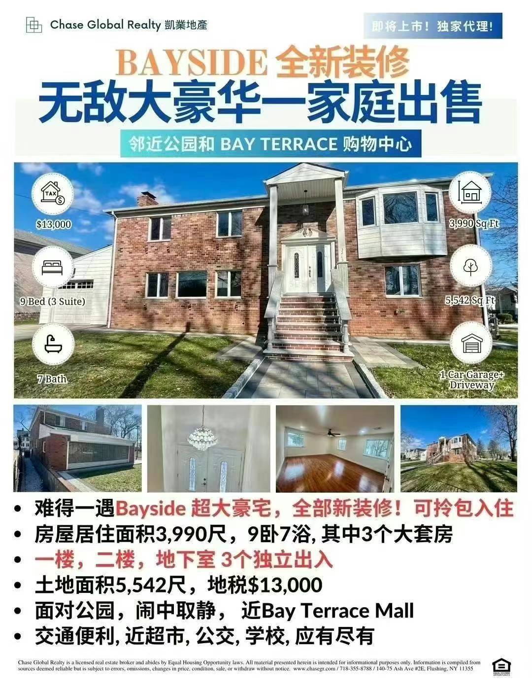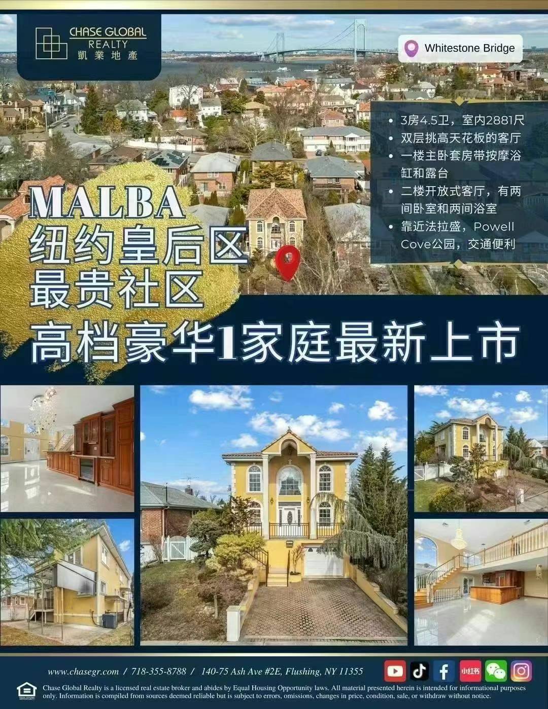 🔹位于美丽的Malba,靠近Powell Cove、公园,距离20th Ave购物商场/餐饮广场和Cross Island Expy都很方便。