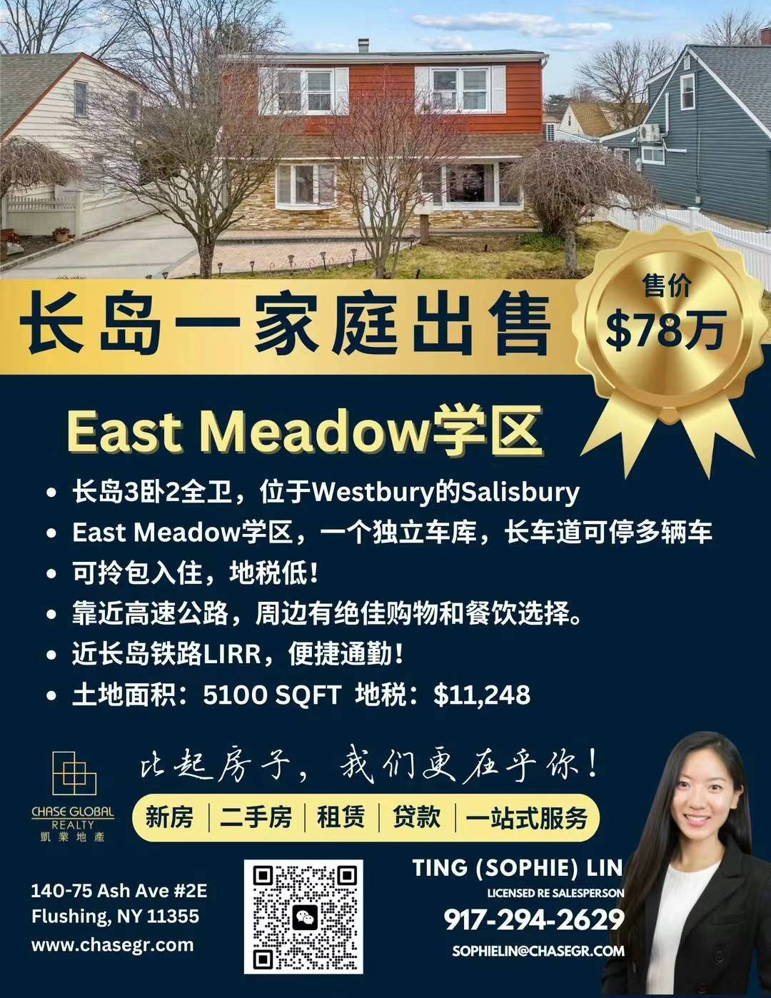 🔹在East Meadow学区,地税低,是理想的家园选择