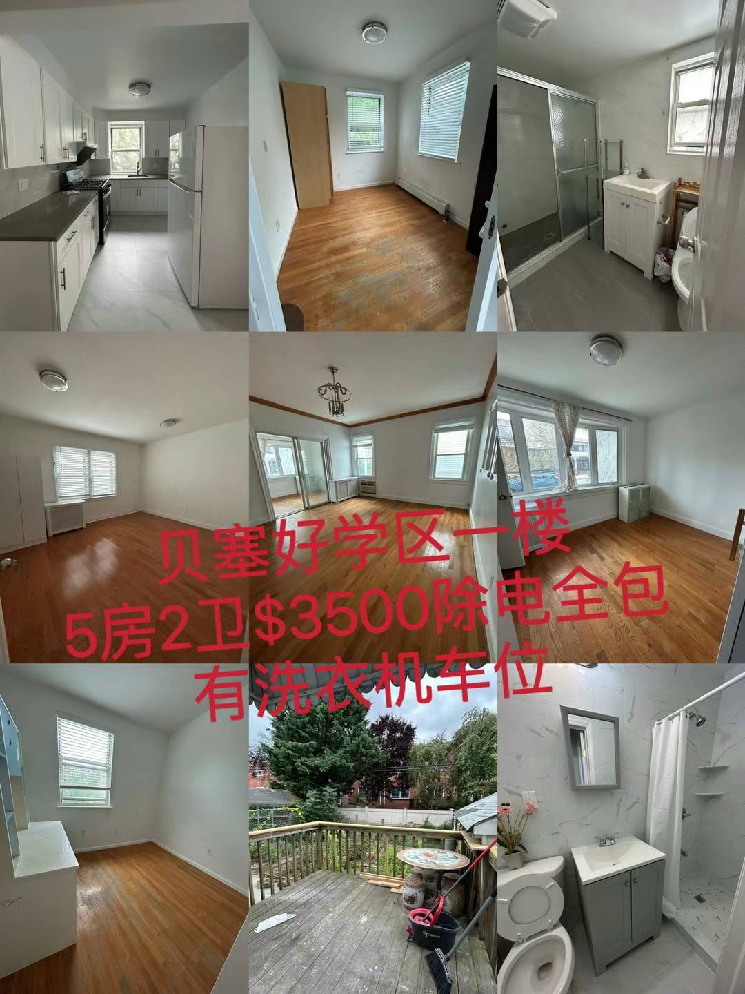 贝赛Oakland garden 220st &64ave 新装修一楼+二楼5房2厅2全浴带后院,$3500包水暖气和煤气,包一个车位,租客只付电,有洗衣机,26学区,蓝带PS46 小学,蓝带JHS74 初中,卡多索高中,近495高速29出口,Q27到法拉盛 ,QM8,QM5到曼哈顿、近Q30,Q88,近各种餐馆超市洗衣房,近公园,可小宠 646 546 6309