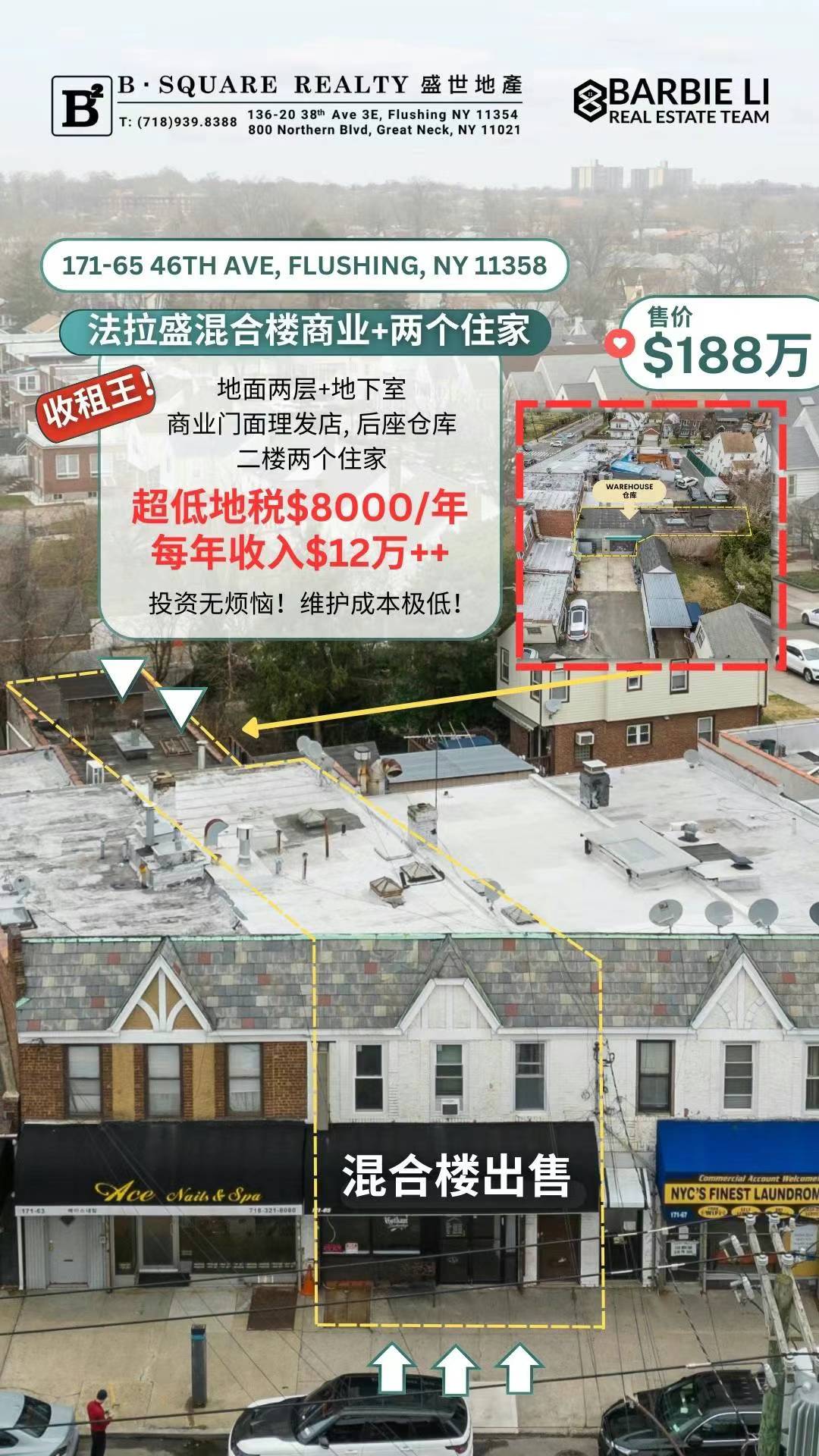 法拉盛房屋出售Flushing NY House for sale 🌟收租王🌟北法拉盛商业住家楼