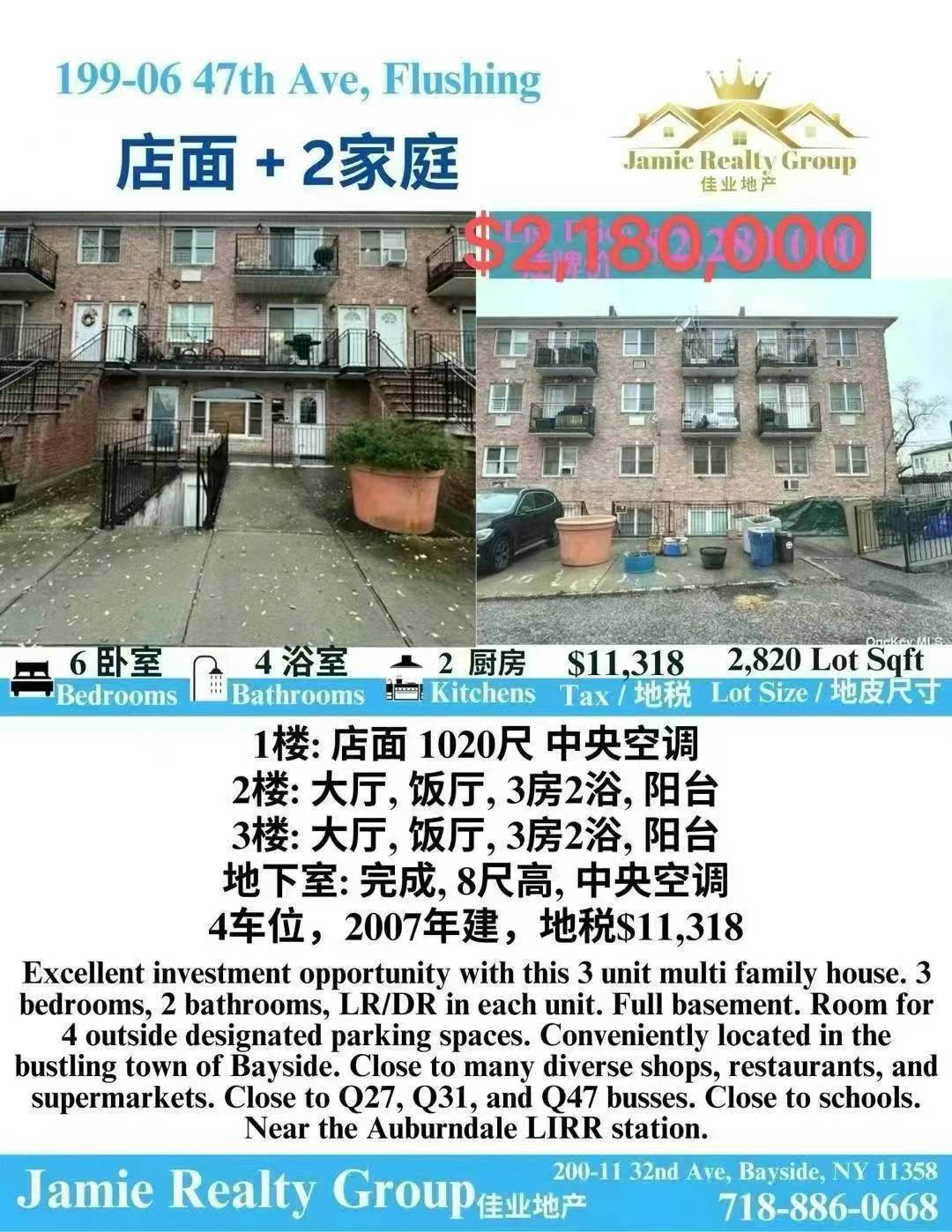 法拉盛店面+两住家