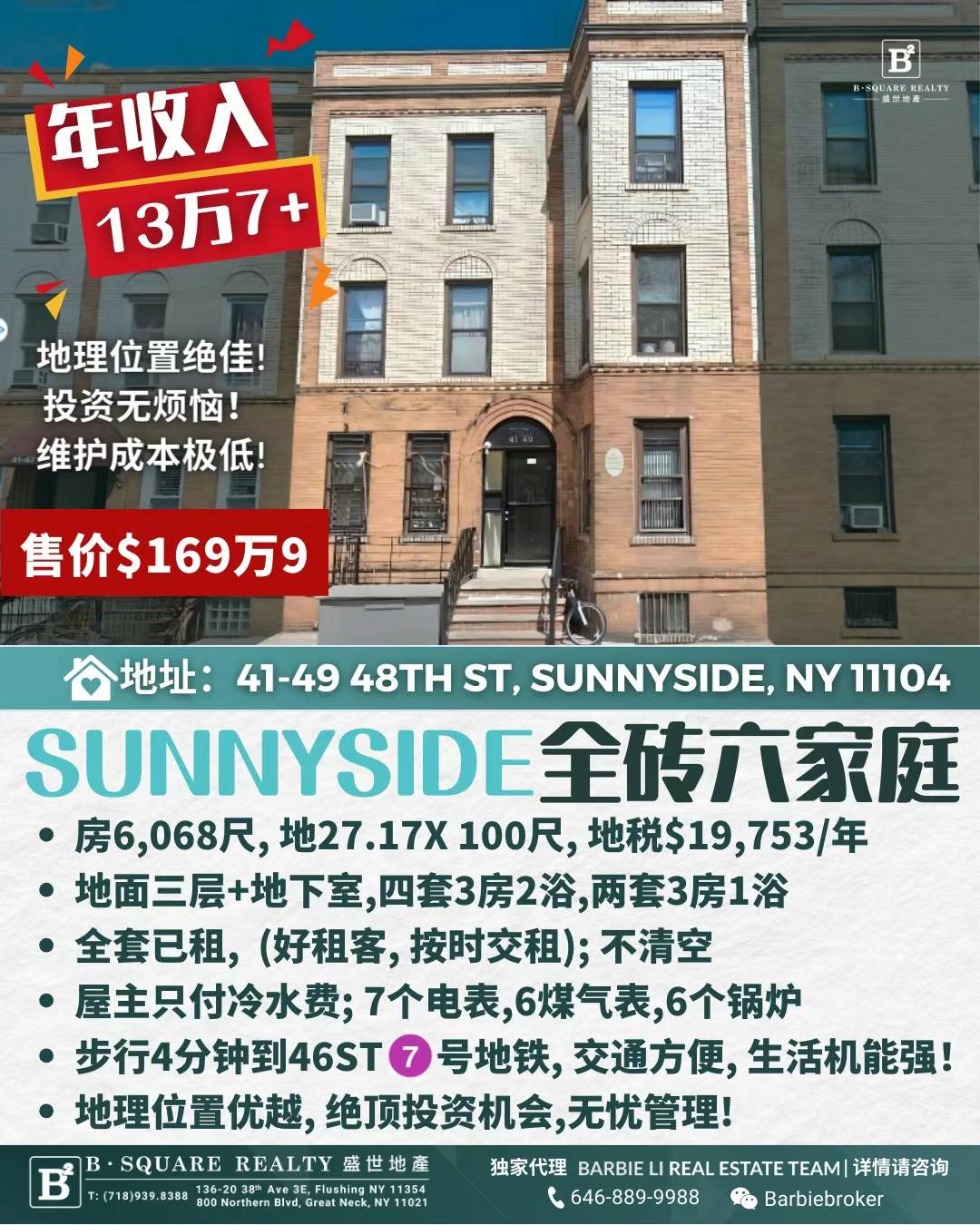 💰售价$169万9📍41-49 48th St, Sunnyside, NY 11104