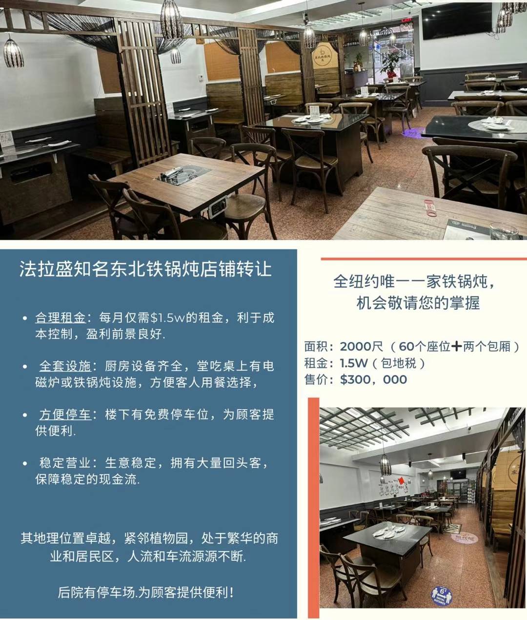 🎉绝佳机会!法拉盛知名东北铁锅炖店铺转让🎉