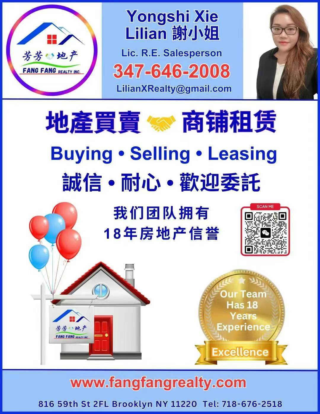 ☎预约请电 Lilian 347-646-2008