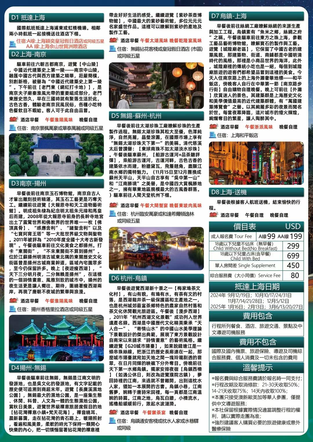 獨家! 旅游【至臻江南金秋美食八天】雙重頂級享受旅游