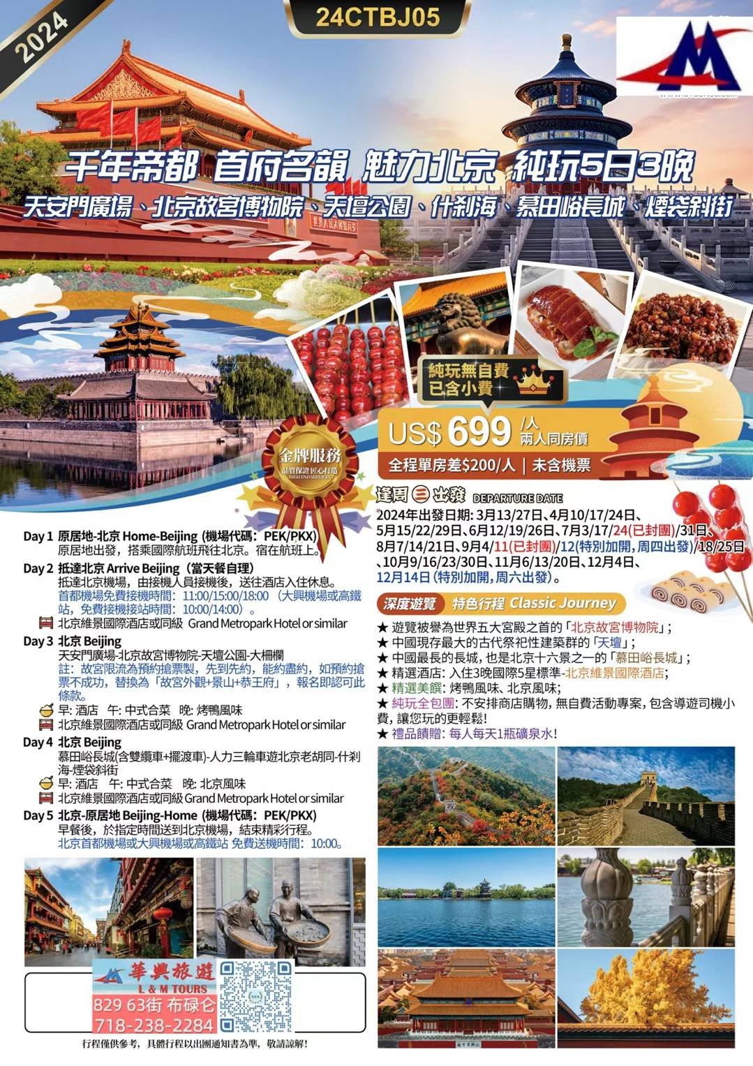 1北京一地:" 24CTBJ05帝都北京 純玩5日3晚