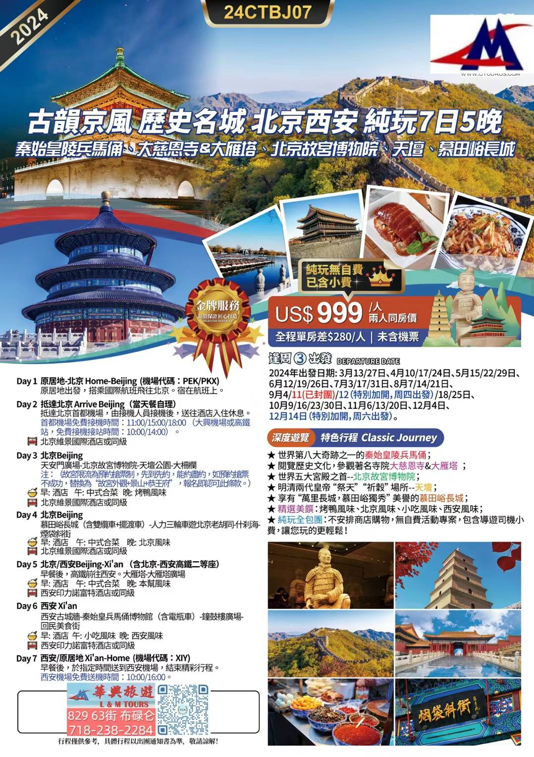 2北京西安:"24CTBJ07 古韻京風 歷史名城 北京西安 純玩7日5晚"