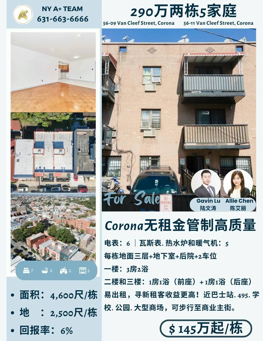 可乐娜房子出售Corona NY✅2O24最佳投资物业!无租金管制|无violation|可乐娜高质量5家庭只需2家庭价格!🏢可乐娜两栋R6B Corona合法全砖五家庭出售🏢