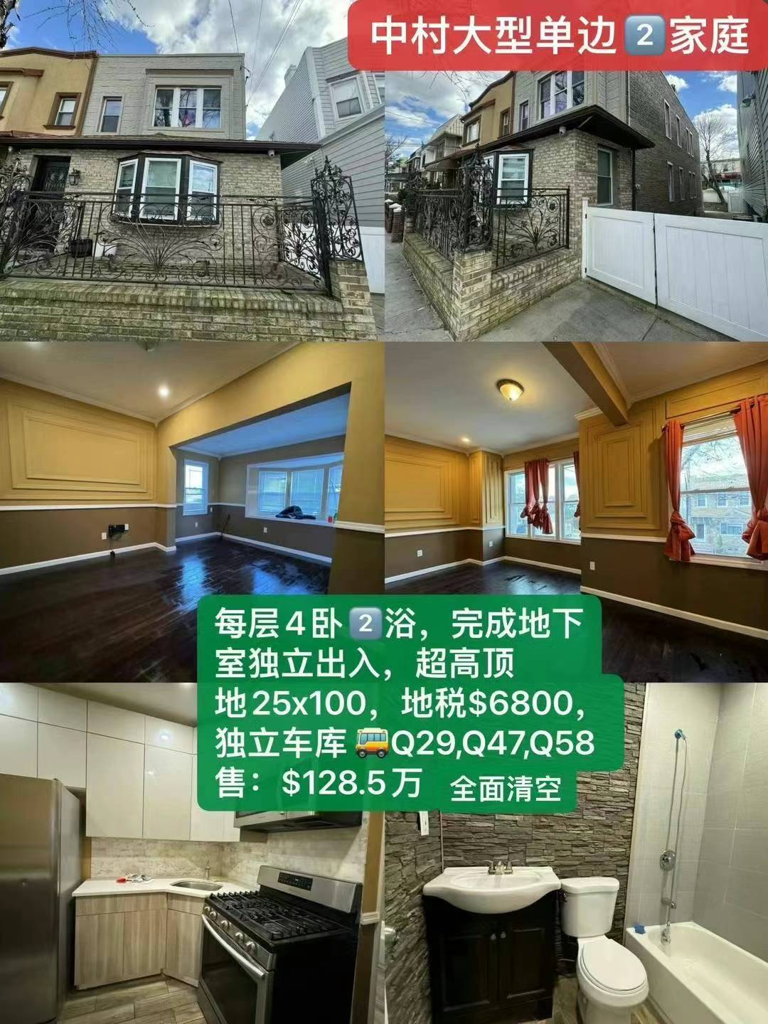 🔥讓數據說話!獨家歡迎所有人!離法拉盛13分鐘!中村新裝修大型2家庭!