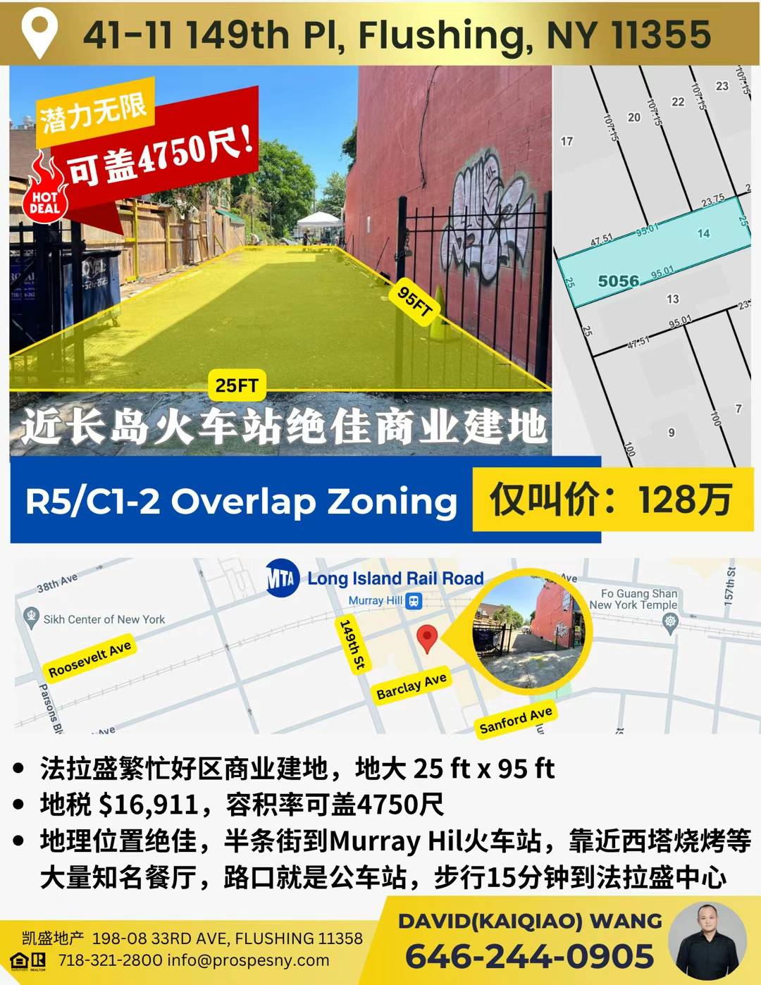 🌟【法拉盛Murray Hill 火车站附近,绝佳商业建地】🌟