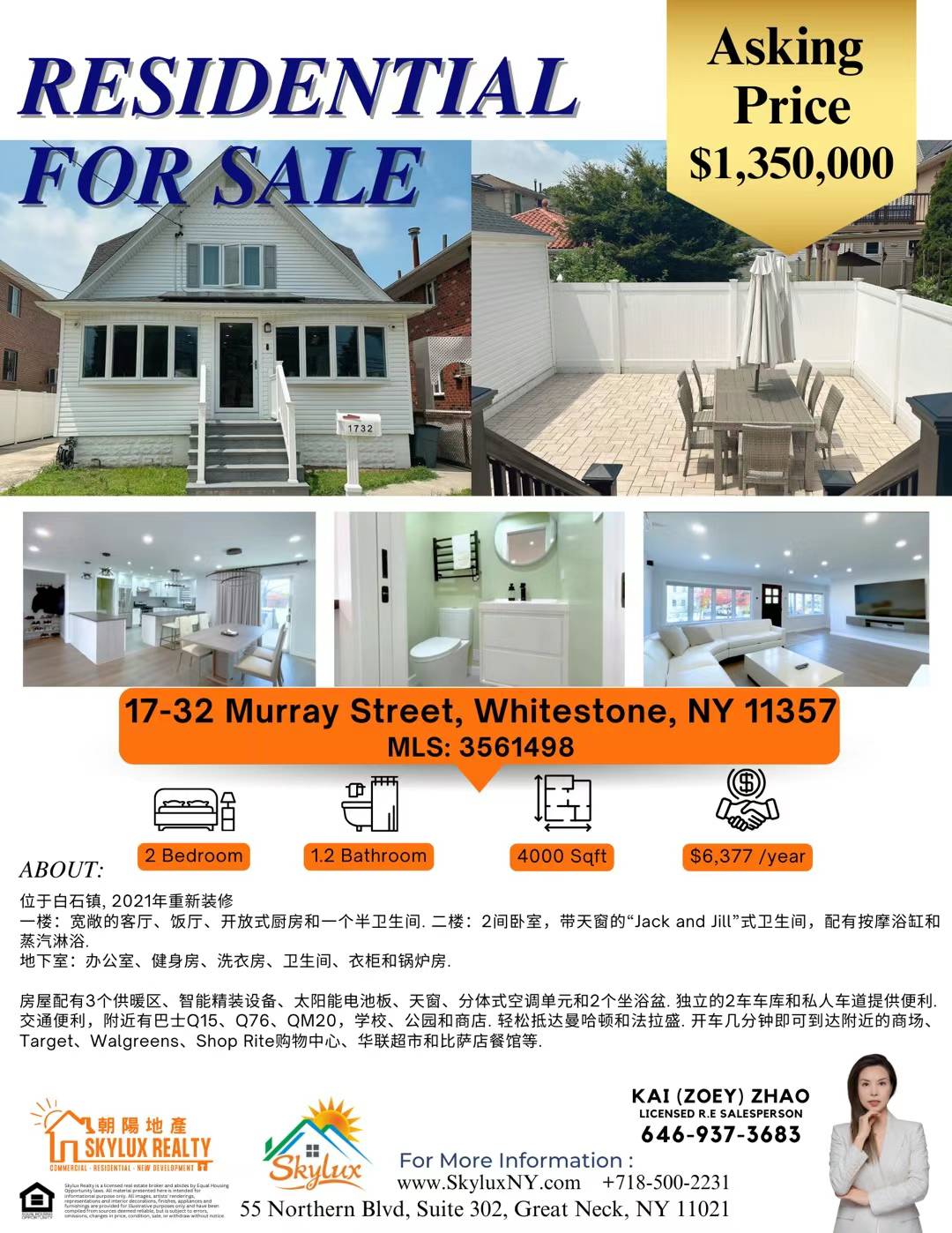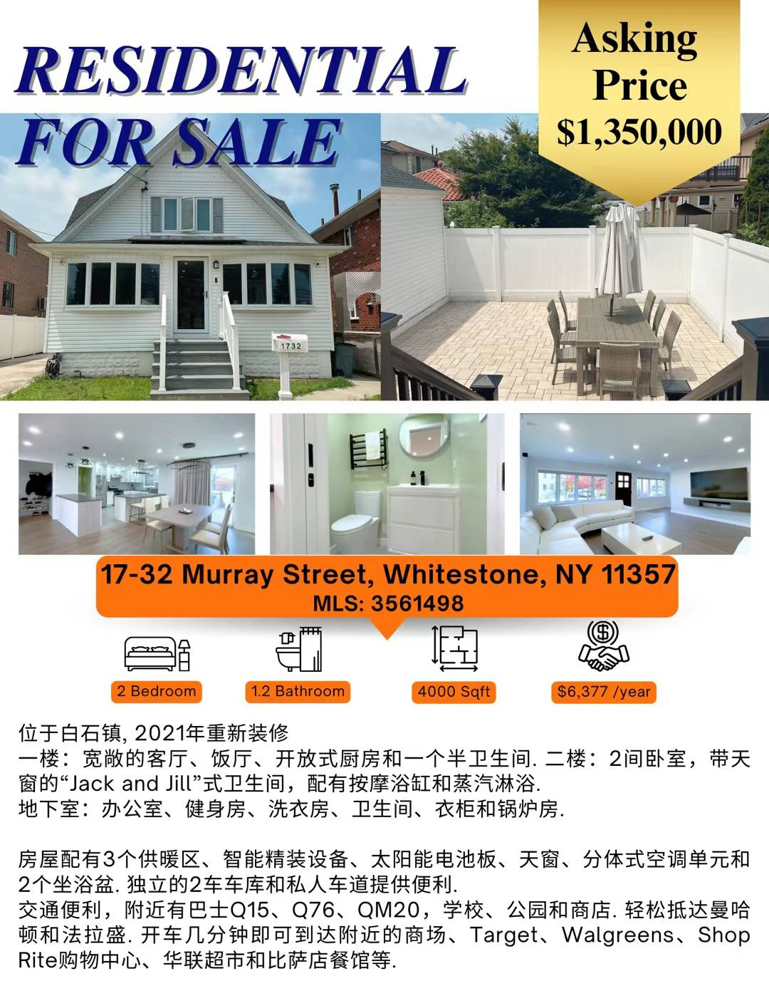 🔥‼️新上市‼️🔥白石镇房子出售Whitestone NY位于白石镇, 2021年重新装修