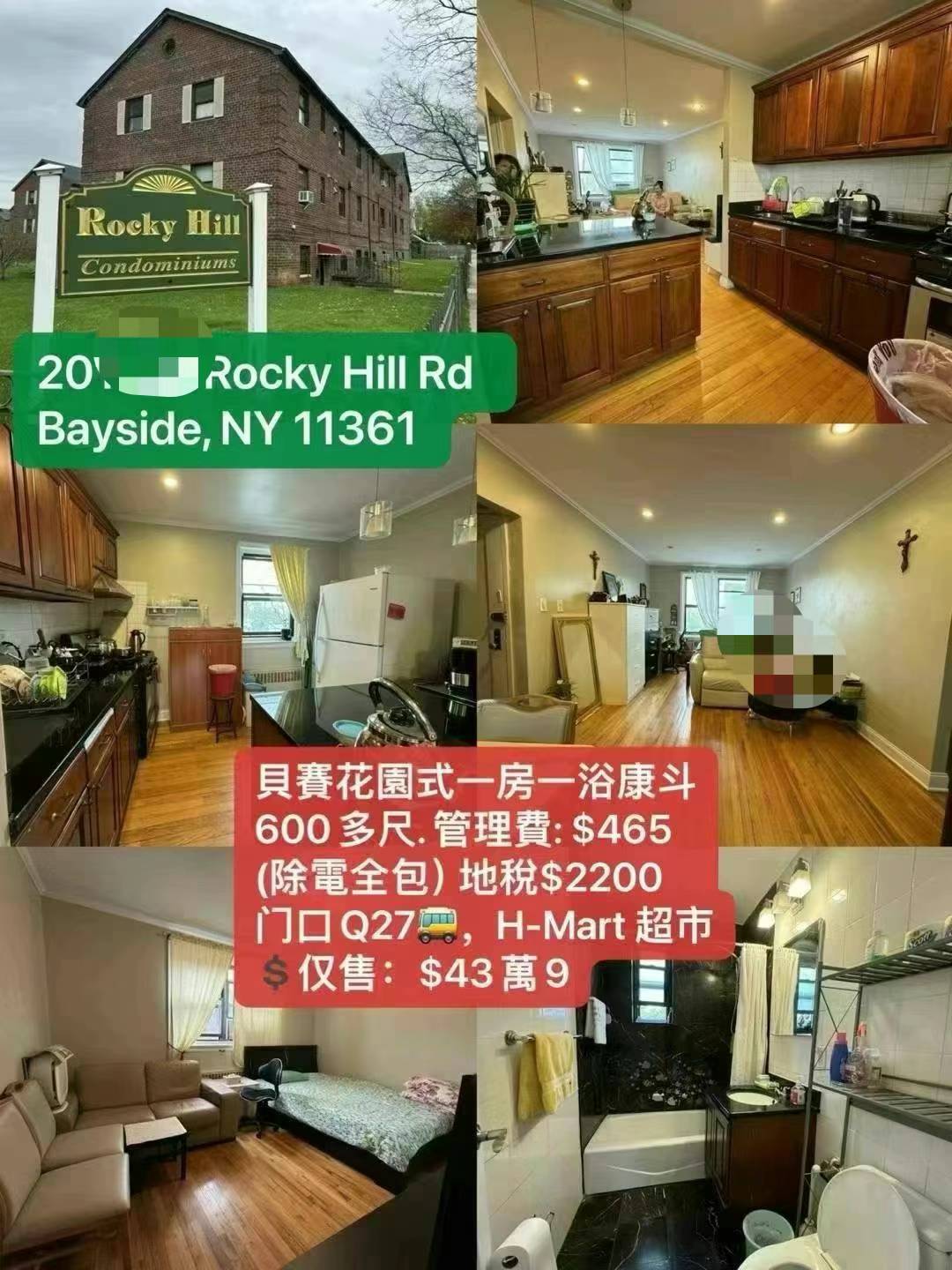 贝赛房子出售Bayside NY罕有貝賽花園式一房一浴康斗201-Rocky Hill Rd Bayside NY💲仅售:$43萬9