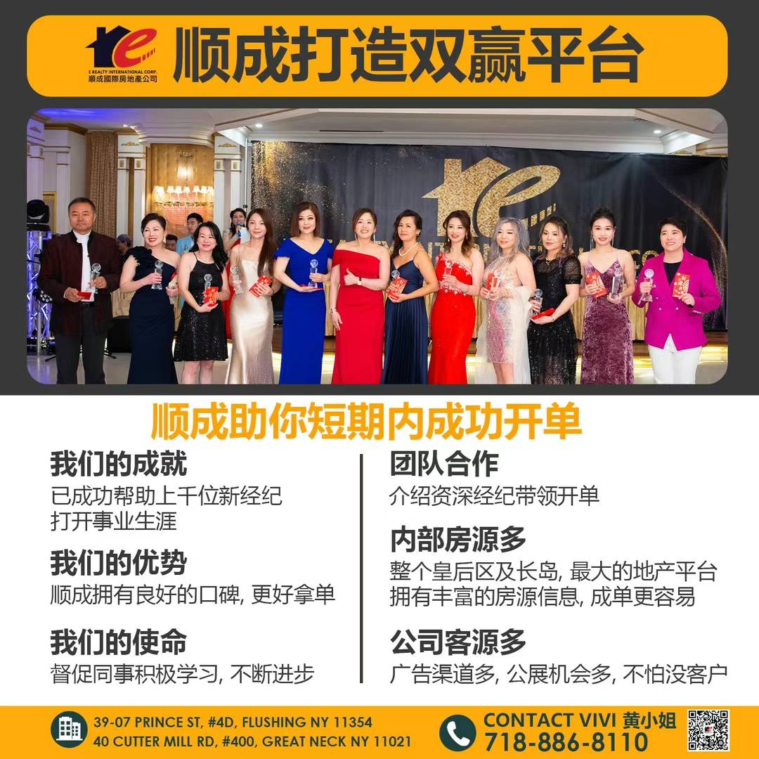 纽约顺成地产经纪 纽约华人房地产公司纽约房地产经纪人杨雪莉E REALTY INTERNATIONAL CORP.順成國際房地產公司shirley yang