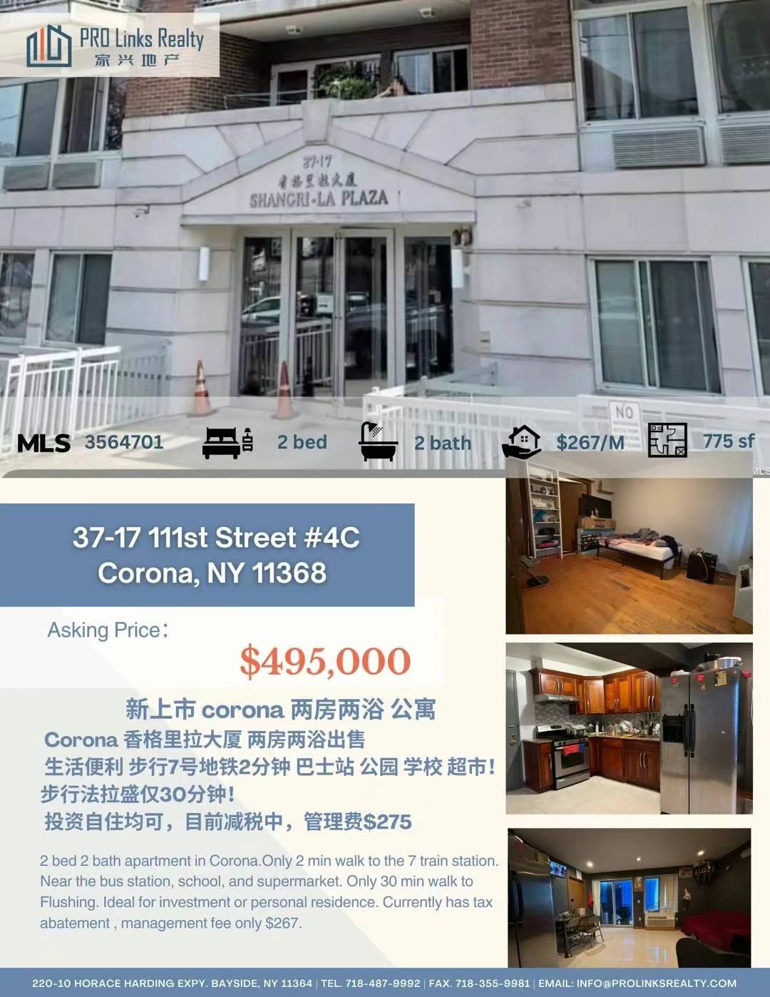 可乐娜房子出售Corona NY夏天大优惠,可乐娜惊喜价! $49万5