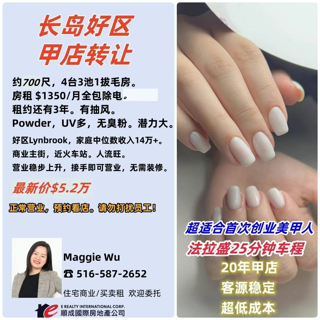 售价6万 Maggie Wu 516-587-2652 住宅商业/买卖租 欢迎委托