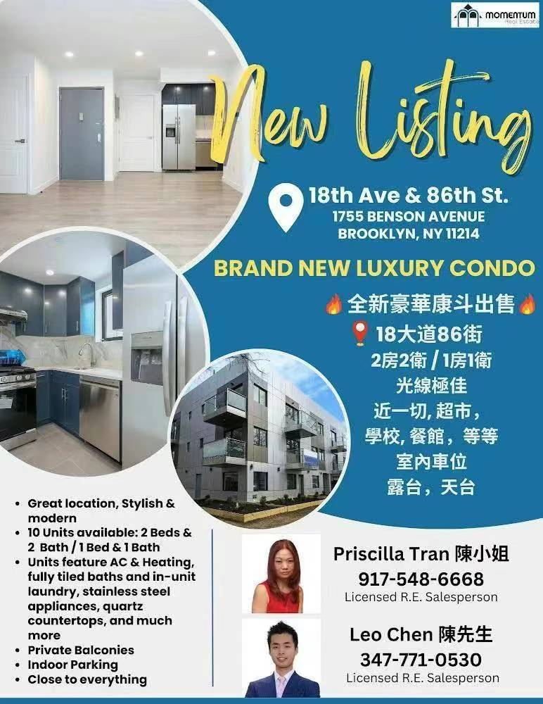 🎈Brooklyn布鲁克林房屋出售 Brooklyn NY布碌仑新上市🎈, 明天7/23星期 二 下午。6:30 pm 點, 可以預約看 🔥新上市18大道86街 🔥 1755 Benson Ave