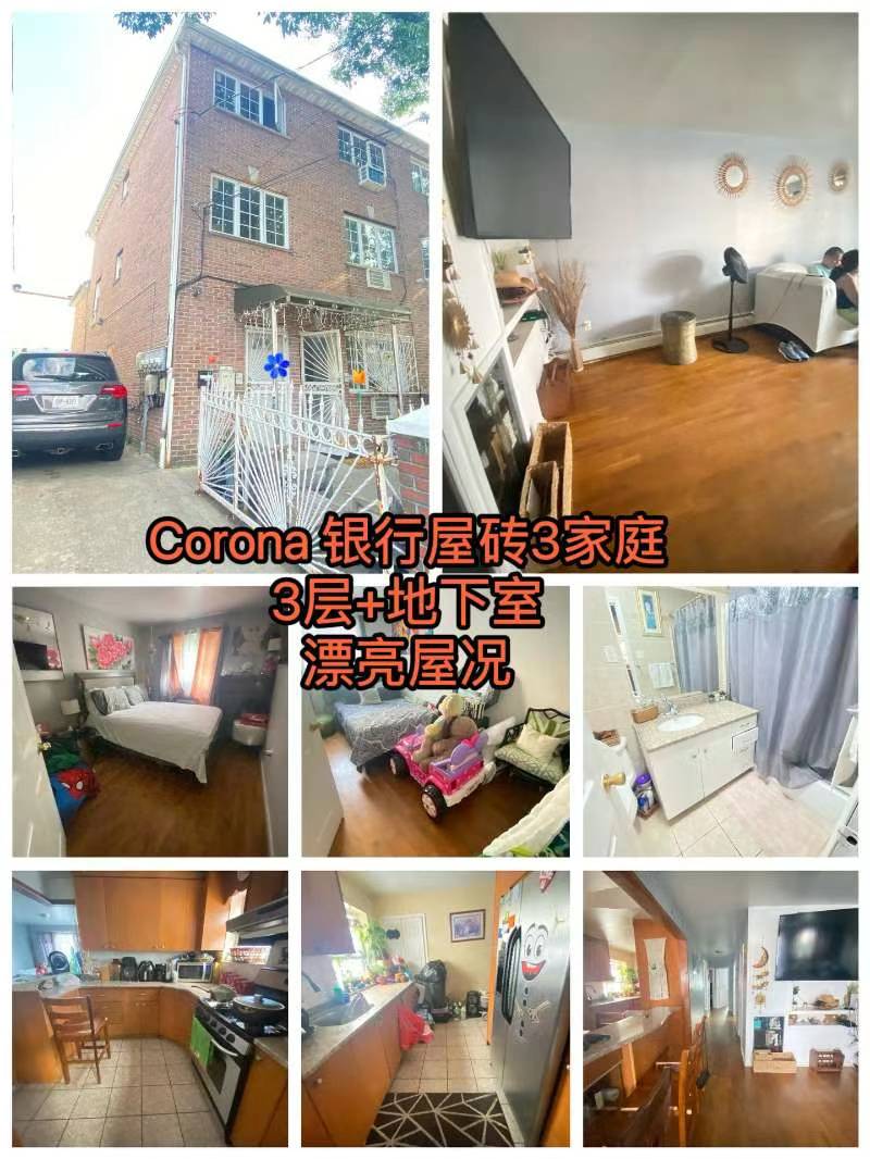 Corona可乐娜房子出售Corona NY新上市可乐娜/东艾姆赫斯特Elmhurst年收租14万!可乐娜又一栋收租王!可全面清空年轻3家庭, 全砖半独立自拥车库车道!一条街到北方大道!地30x100, 屋20x50! 663,地面三层+ 完成地下室,暖气热水全分离租客自付!无需装修,秒租地段!516-777-0887