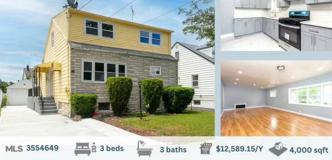 Long Island长岛房子出售 Long Island NY新上市仅限客人 新上市New Hyde Park新德海公园全新装修一家庭三房3全浴交通便利495公路30出口,只售$73万9 白菜🥬价格