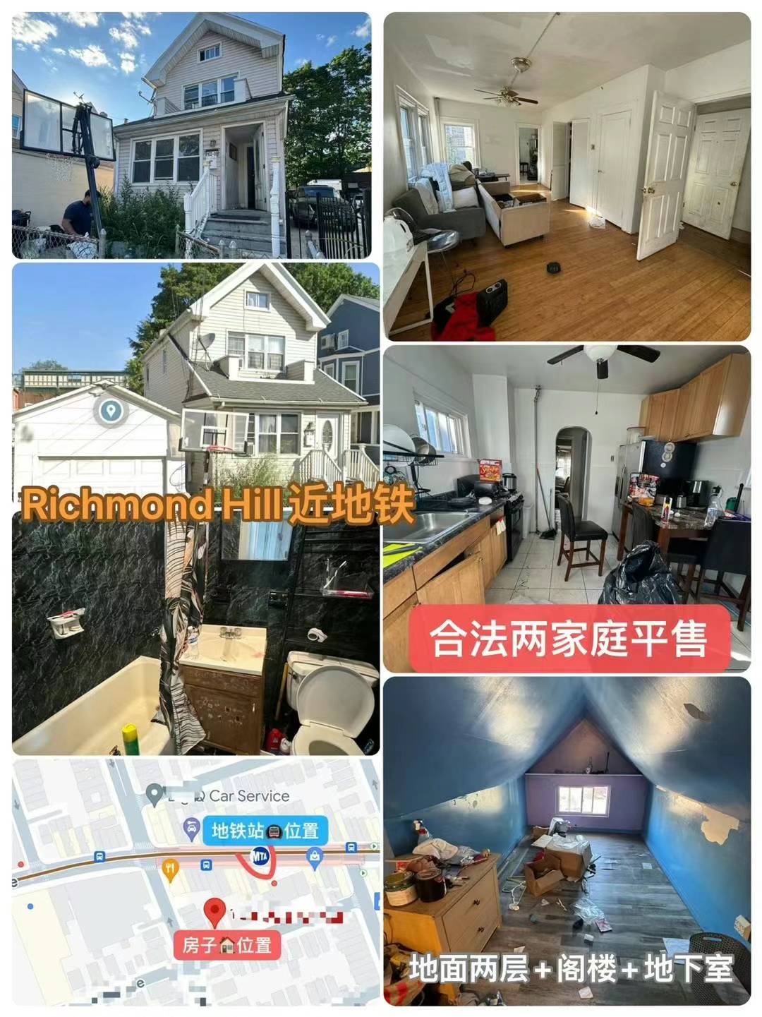 Richmond Hill NY 皇后区列治文山房子出售新上市Richmond Hill中心近地铁独立两家庭💥 皇后区列治文山房子出售捡漏价平售💥产权干净!仅售$68万(装修后市值90余万)利润空间大!
