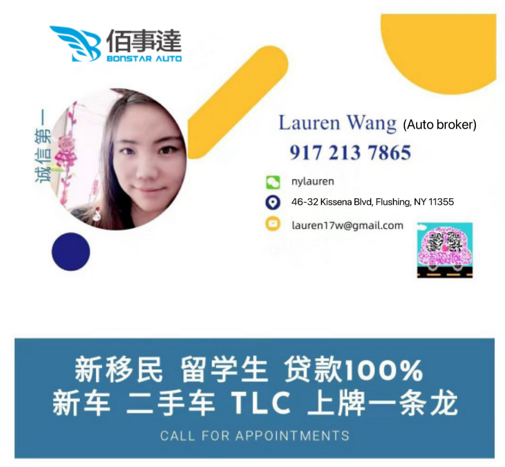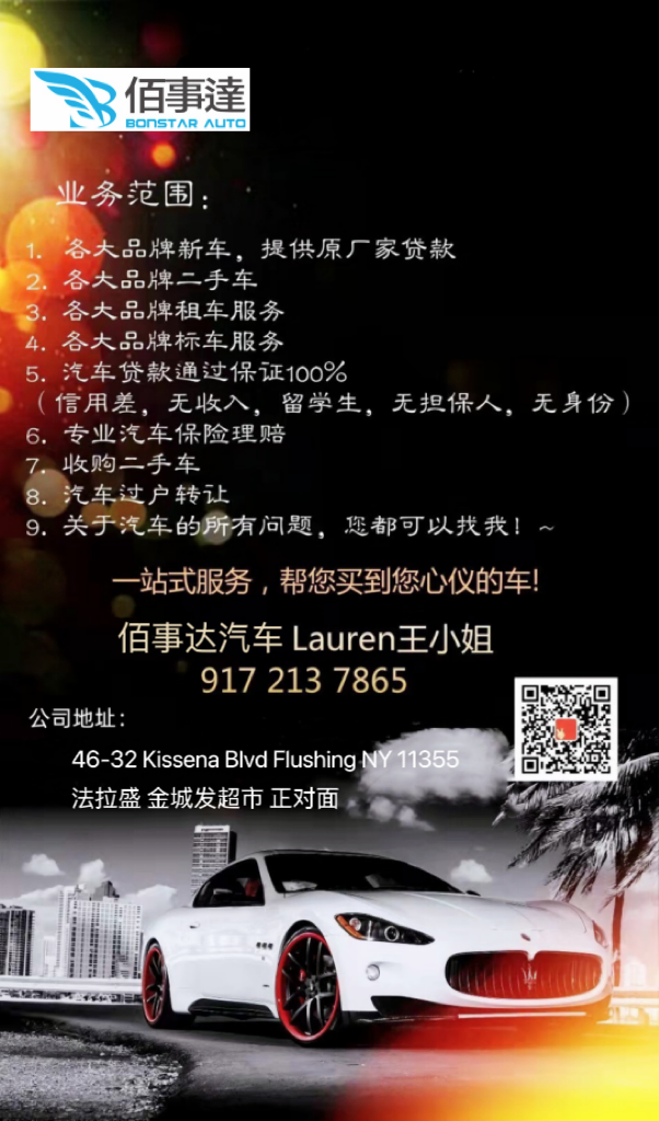 纽约专业金牌汽车顾问 王小姐竭诚为您提供有关车子一切服务!~