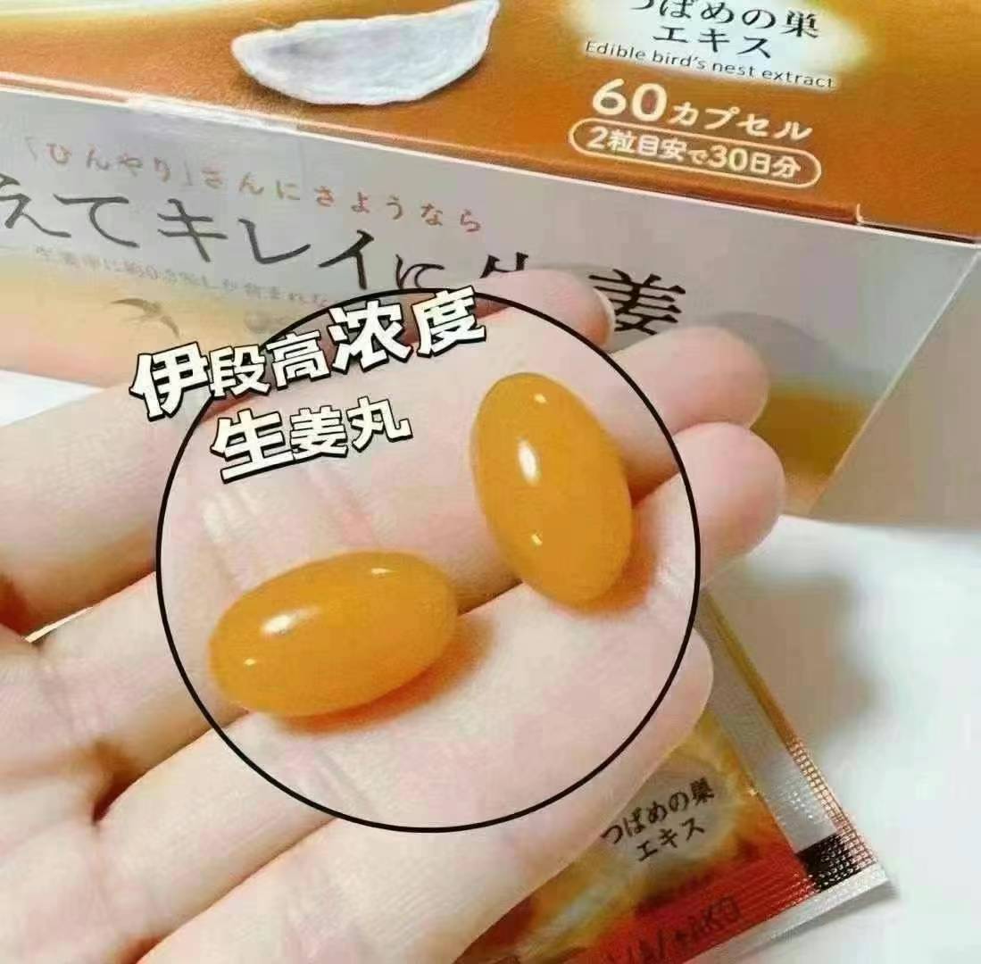 由东京大学农学博士强烈推荐好物必须推荐金丝燕燕窝不仅珍贵难採,伊段生姜油丸的生姜也是1kg生姜只能提取3g生姜油,对改善身体湿气,提高新陈代谢,燃烧脂肪有明显的作用,吃完之后就感觉肚子里暖暖的,而且不辣,全新升级,特别添加印度尼西亚和马来半岛的金丝燕燕窝,对润肺美容,都有超好的功效,女性养生必备产品哦~一盒30包,每一包里有两小粒儿,一天一包简单方便,提高体温,提高免疫力