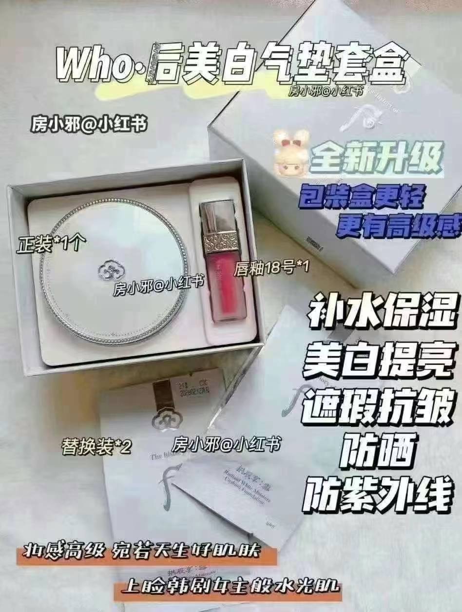 后白美气垫套(2替)~唇釉版͏ 后水光份美白气垫套1个正装➕2个替换➕送唇中釉样原价韩币75000 whoo后雪美白分水光气美垫白水分气光垫,美白,遮瑕保,湿,提亮肤色的效果好很,会让的你肤色均,匀并且呈非现常健的康光泽,用了像就打了水光针~