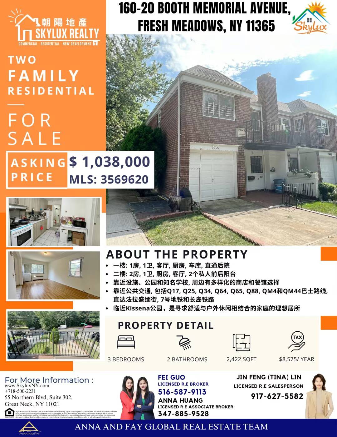 ❤️🔥法拉盛合法2家庭, 3房2卫, 地2422平方尺❤️🔥
