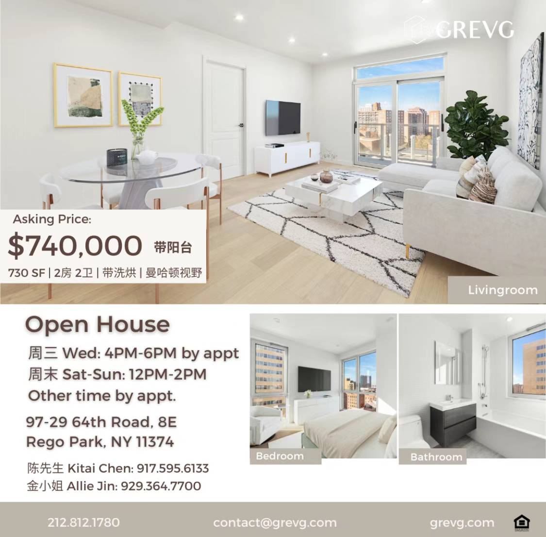 Rego Park雷哥公园房子出售Rego Park NY新上市Asking Price:$740,000带阳台730 SF|2房 2卫|带洗烘|曼哈顿视野LivingroomOpen House周三 Wed:4PM-6PM by appt周末Sat-Sun:12PM-2PM