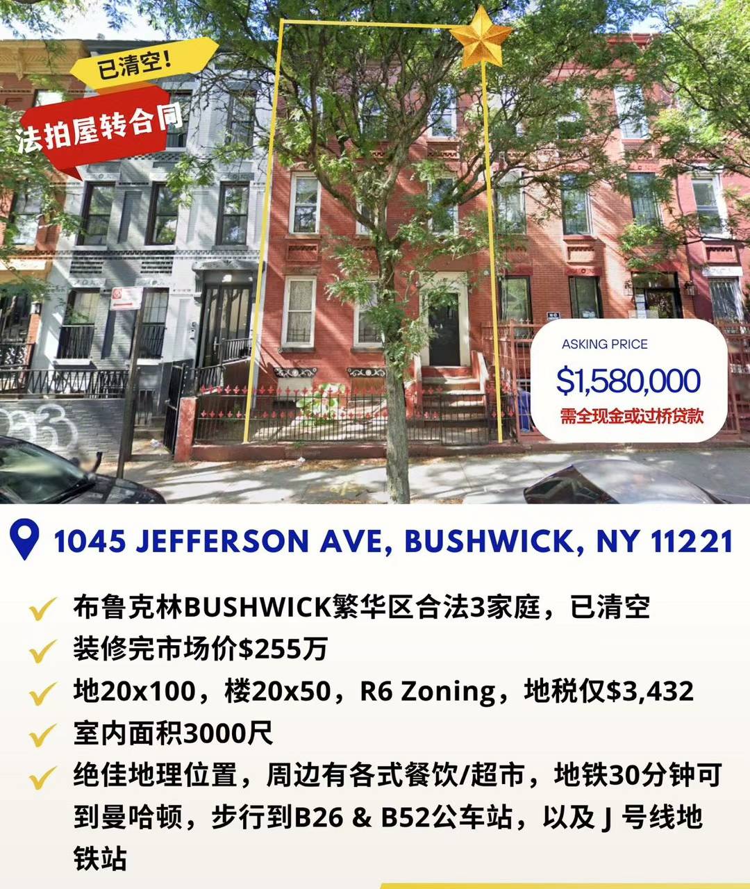 Brooklyn布鲁克林房屋出售 Brooklyn NY布碌仑新已清空!法拍屋转合同
