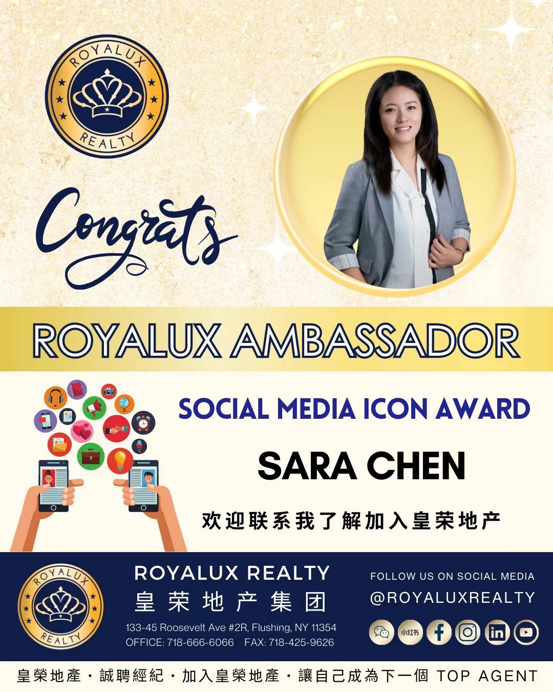 🥇很荣幸7月份上了纽约地产经纪 纽约华人房地产公司【皇荣地产销售精英成就榜】!衷心感谢每个客户的信任和支持。作为皇荣地产的杰出经纪人,我将竭诚为您提供一流的房地产服务。