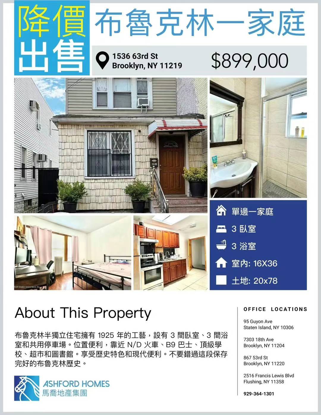 Brooklyn布鲁克林房屋出售 Brooklyn NY布碌仑新上市🔥價格調整🔥售價89萬9,單邊1家庭📍1536 63rd St, Brooklyn, NY 11219