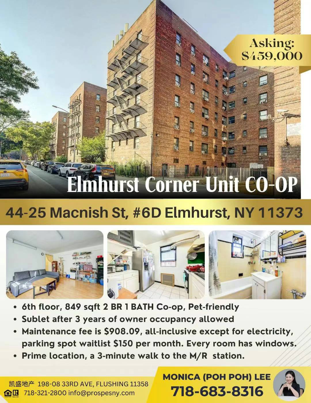 🌟Elmhurst艾姆赫斯特公寓房子出售Elmhurst NY新上市【Elmhurst 可出租2房公寓CO-OP】出售🌟 欢迎合作转发🔵Elmhurst 公寓849尺2房Co-op,宠物友好,自住3年后可以出租