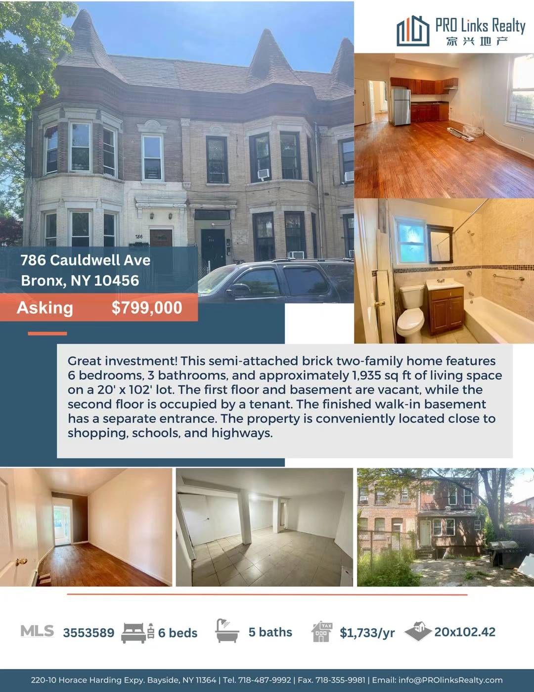 Bronx布朗士房子出售 Bronx NY新上市🎉Bronx 10456合法2家庭🧧售79万9
