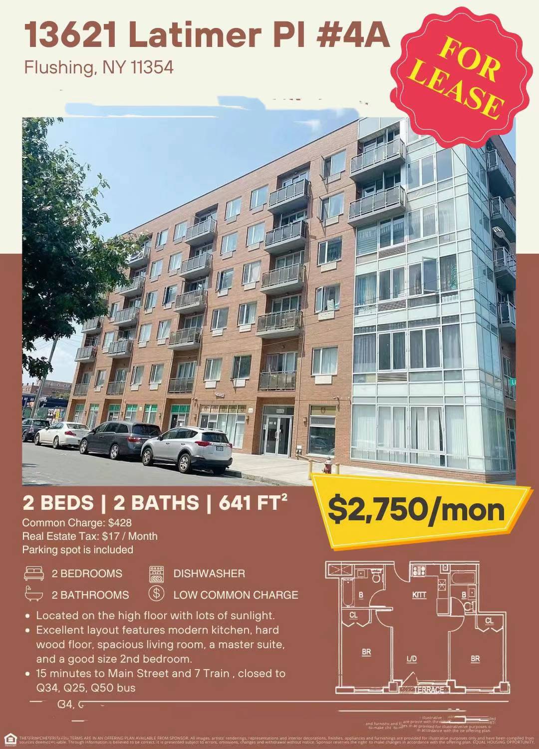 📍136-21 Latimer Pl, #4AFlushing NY 11354💰 $ 2,750 /Month