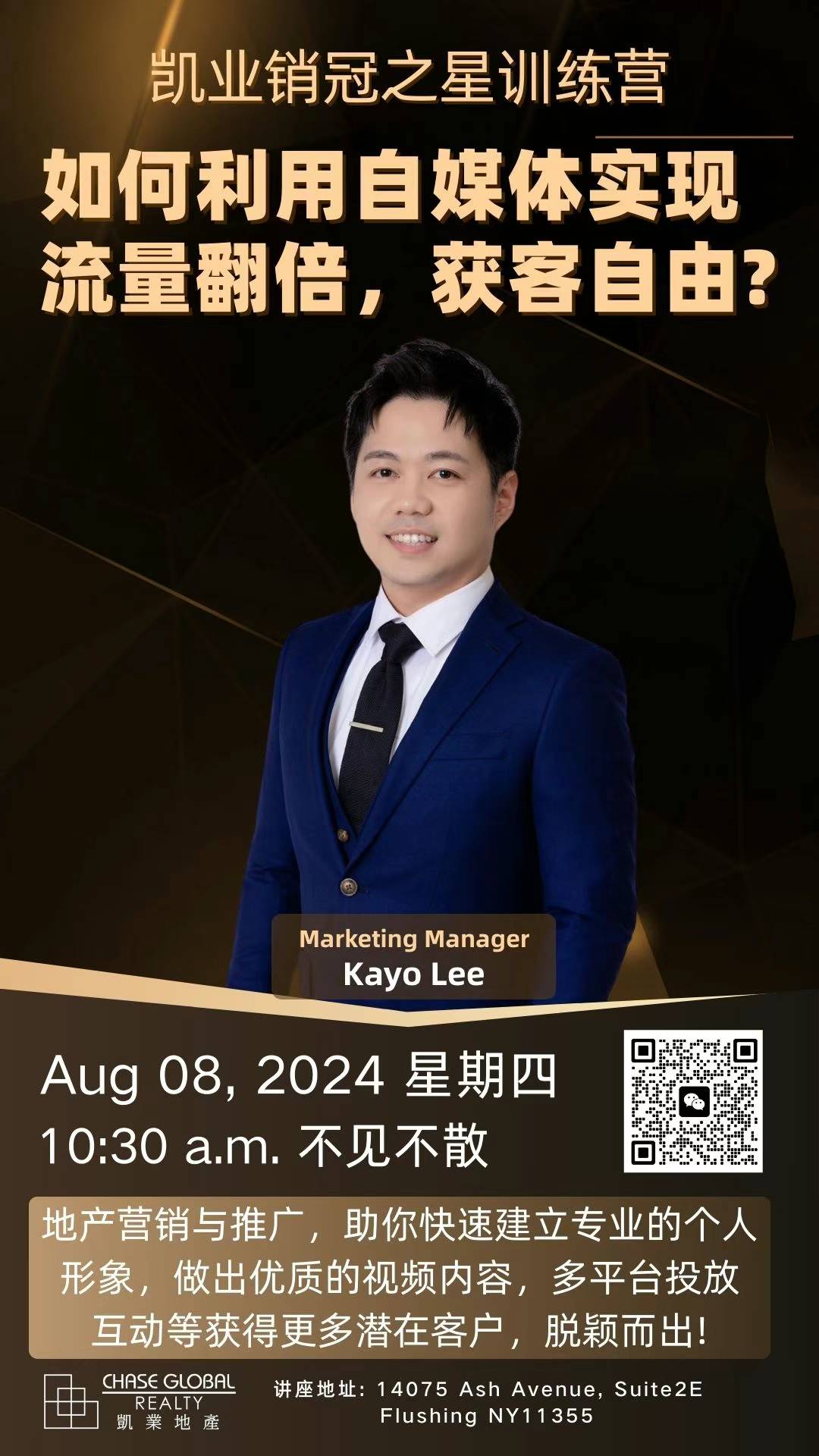 营销总监Kayo Lee专业的地产营销与推广。助你快速建立专业的个人形象,做出优质的视频内容,多平台投放互动等获得更多潜在客户,助你快速开单!实现半年内赚到20万以上!更加高效做单,实现高收入目标!欢迎大家来我们现场提问和探讨!我们共同成长!👊