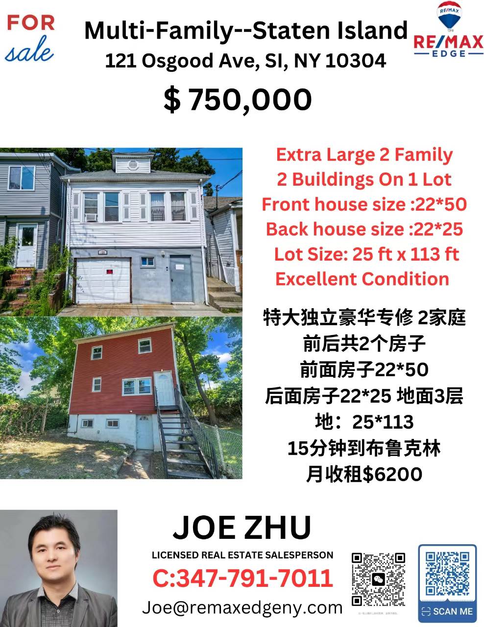 10314最新房子出售 新上市Staten Island史丹顿岛房子出售 🔥新上市 史岛2个独立房子2家庭🏘️121 osgood ave Staten Island my 10304