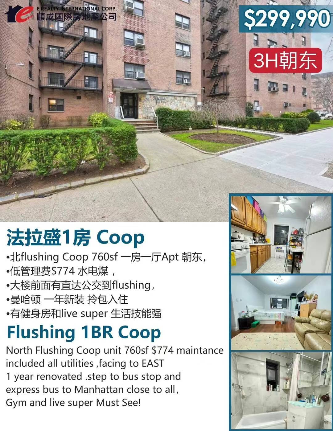 查收入和信用Flushing法拉盛公寓出售 Flushing NY Coop for sale新上市