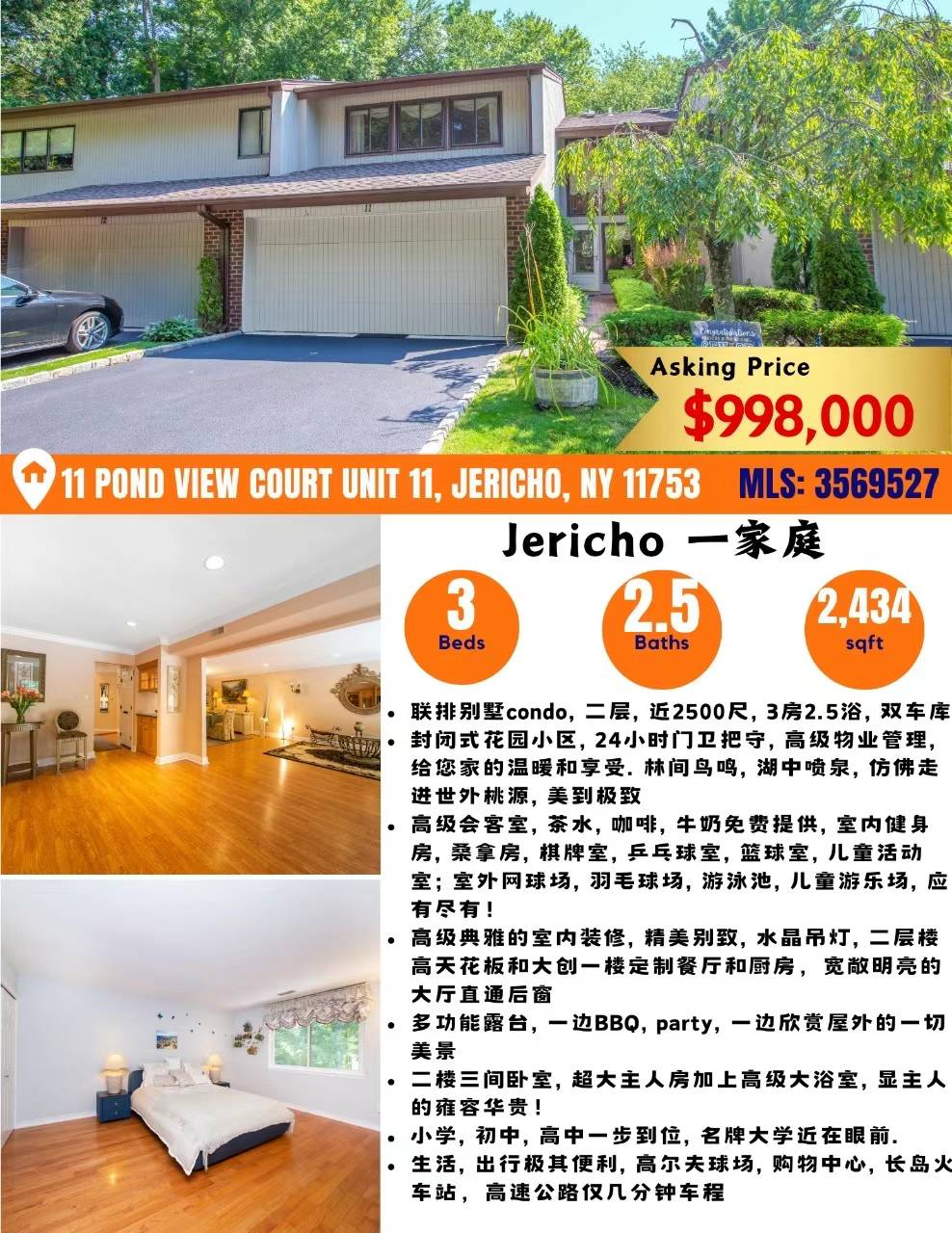 Long Island长岛房子出售 Long Island NY新上市地址:11 pond view court Jericho Long Island Jericho长岛杰里科房子出售Long Island NY新上市NY 11753长岛Jericho顶级学区房出售