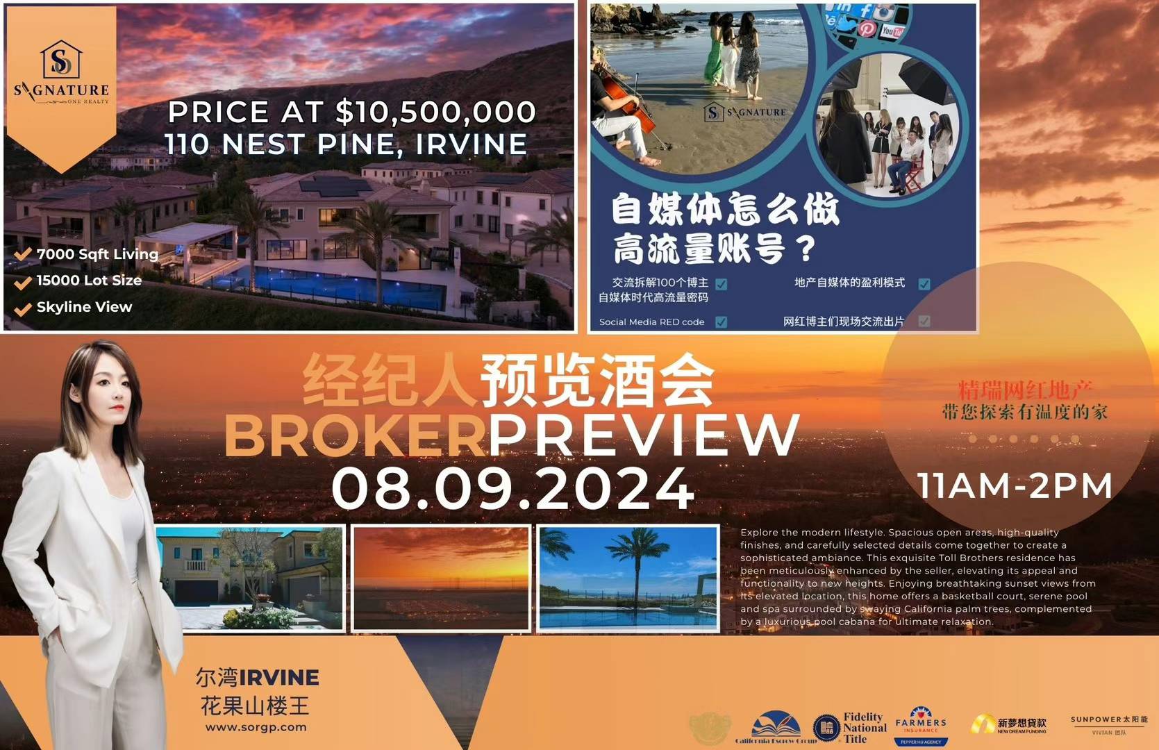 🎉08/09 本周五(11 am-2 pm)Broker Preview网红地产Mina诚挚邀请各公司Brokers、Agents,各位行业精英们莅临品鉴 尔湾花果山orchard hills楼王,及新媒体网红博主们分享自媒体流量码,美食佳肴酒水点心已备好,恭候大家大驾光临来访!