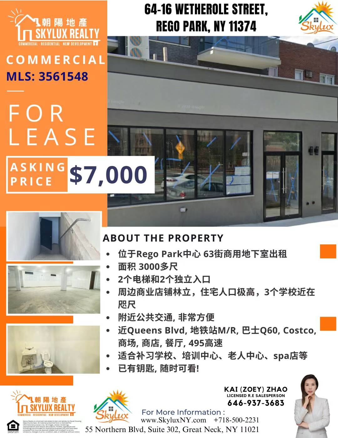 新上市‼️🔥雷哥Rego park中心区域63街商用地下室出租