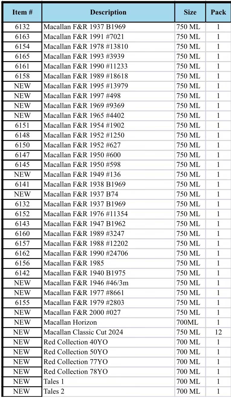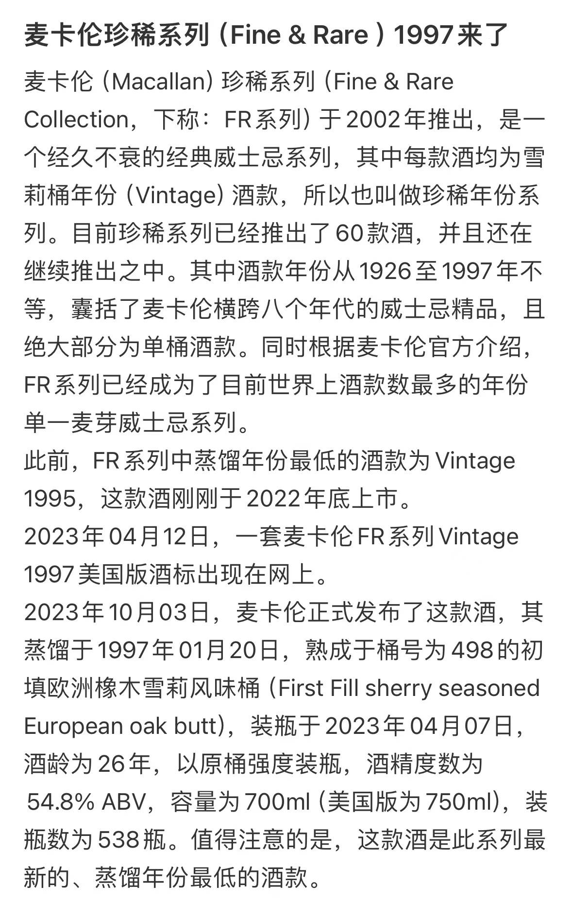 Macallan 顶级系列 接受预定价格在1W起步-10W